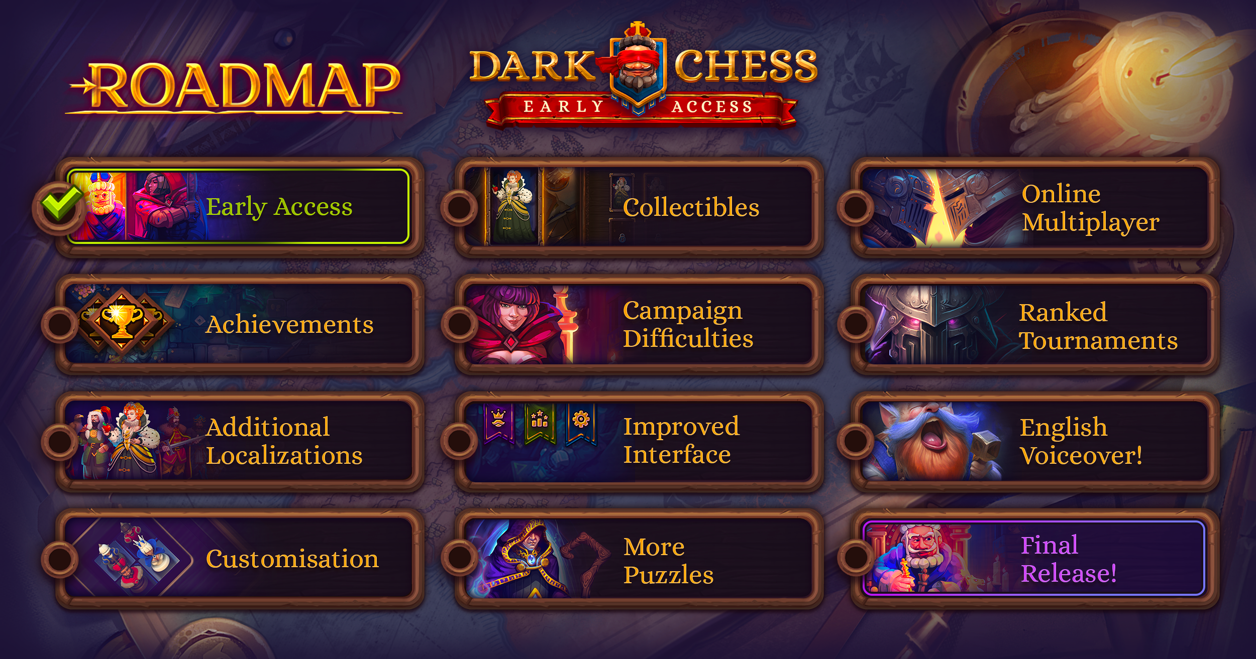 You are always welcome to Follow, Wishlist (if not yet), leave a feedback, share ideas or buy the Dark Chess in Early Access.