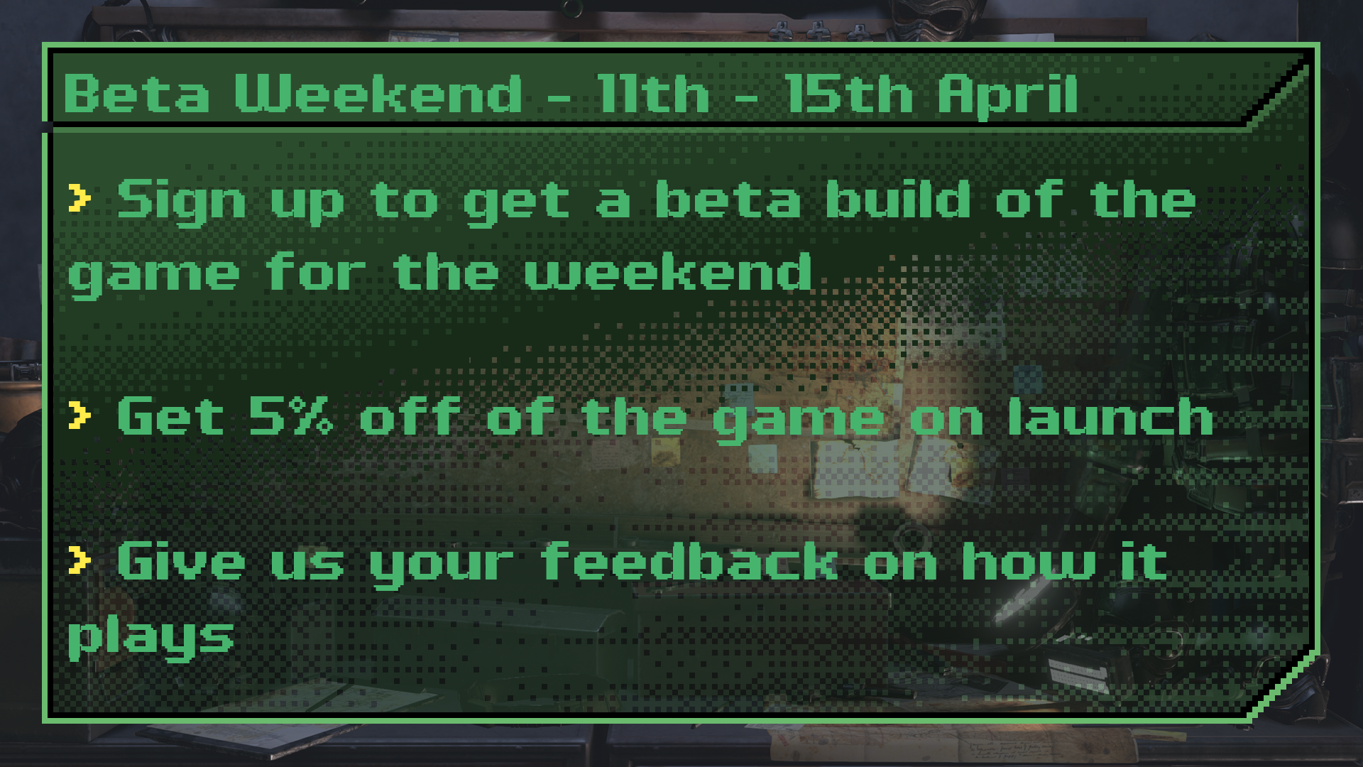 We are looking for people to take part in a beta weekend of this upcoming title and it couldn't be easier to take part.