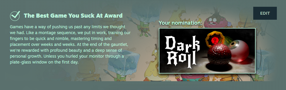 What a fitting category for Dark Roll in The Steam Awards 2019. What's Your nomination? If you haven't picked one yet, do so now!
