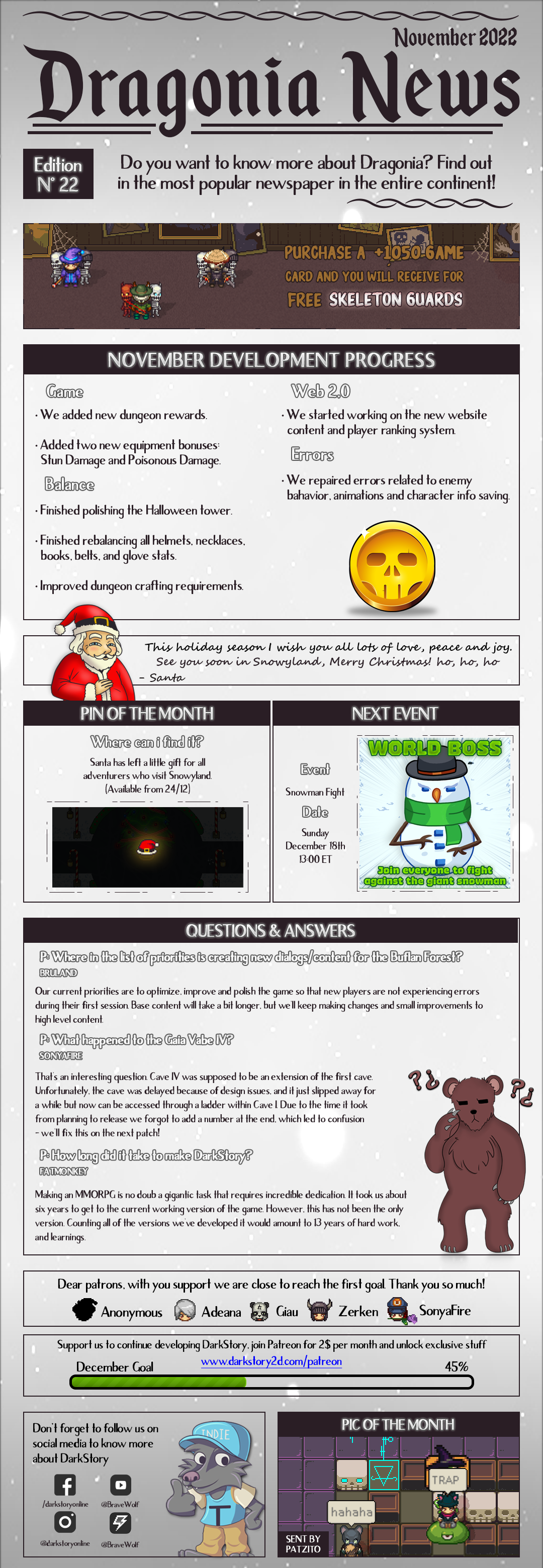 This 2022 has been a very difficult year for us, however, thanks to you we have been able to overcome many obstacles, we still have a lot ahead of us and we hope this 2023 still following us on this long road to continue creating this 2D MMORPG experience inspired by classics, Thank you for being part of this amazing community!