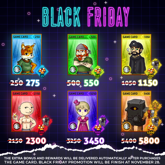 Black Friday is finally here and it comes loaded with deals, so this is the perfect time to buy a Game Card. We have promotions for all Game Cards available in the store, don't let this great offer pass you by, don't leave those awesome skeleton guardians gift.