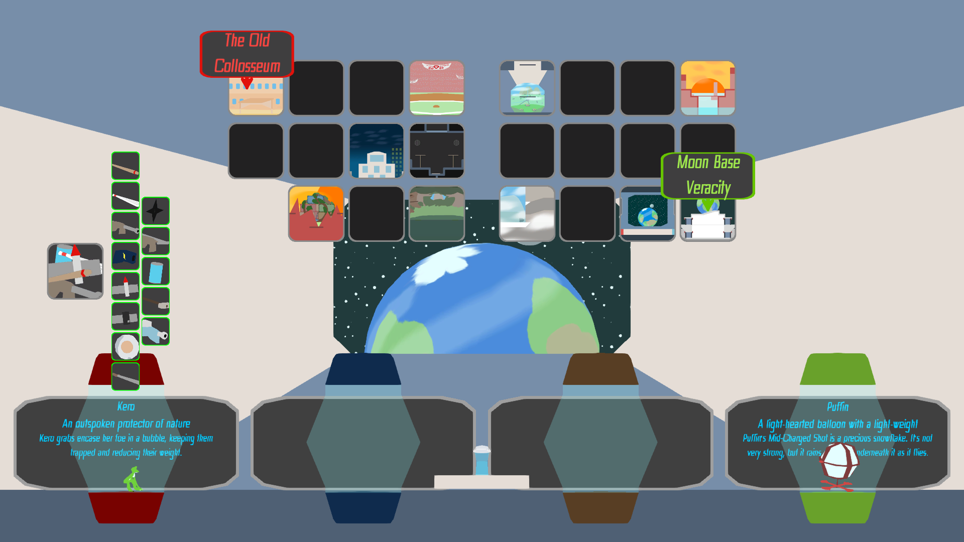 You'll notice a number of locked spaces in the character and stage select menus. Consider them 'reserved spaces' - I've said all along Dash Blitz will have 20 playable characters come v1.0, and every one of those fighters deserves their own home stage. Those empty spaces are my commitment to that promise.