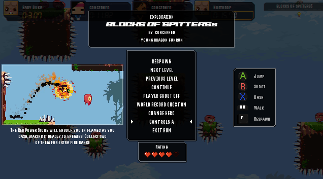 Attempt to fix memory leak(s) possibly appearing when respawning, going to next or previous level during run mode. Should not happen anymore meaning the game should now be free from major leaks such as this one which has been proved especially by “CraZeD” during his long runs with hundreds of respawns. During a stress test I tried respawning > 200 times, and tried going to next level > 200 times. The test showed no leak and therefore did not crash. Let me know if happens to you?