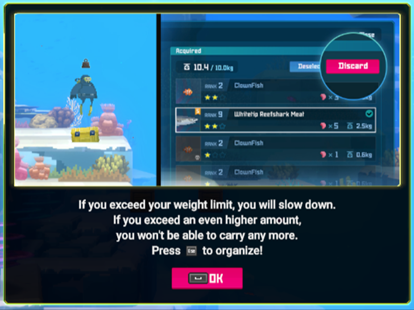1) Underwater Exploration Fixed – Flesh chunks were abnormally calculated when leaving the water after catching several fish Fixed – not being able to acquire items placed in the inventory intermittently Fixed – fish disappearing in certain situations Fixed – Shark or Dave getting stuck in the map during shark’s dash attack Fixed – Sharks not recognizing Dave intermittently during night diving Fixed – Dave entering or moving through some terrain Fixed – eggs not obtained from Orbicular Batfish, Box Jellyfish, and Atlantic Anglerfish Fixed – Striped Catfish not being able to be caught with a sleep gun