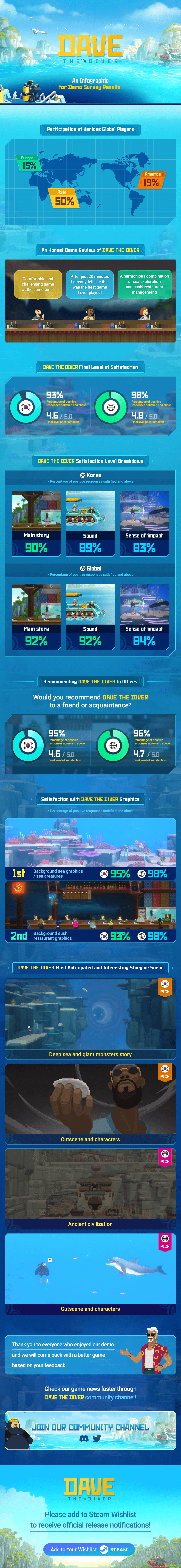 As we have announced previously, the ‘DAVE THE DIVER’ demo will be available online along with the gamescom2022 event. Please refer to the following for details.