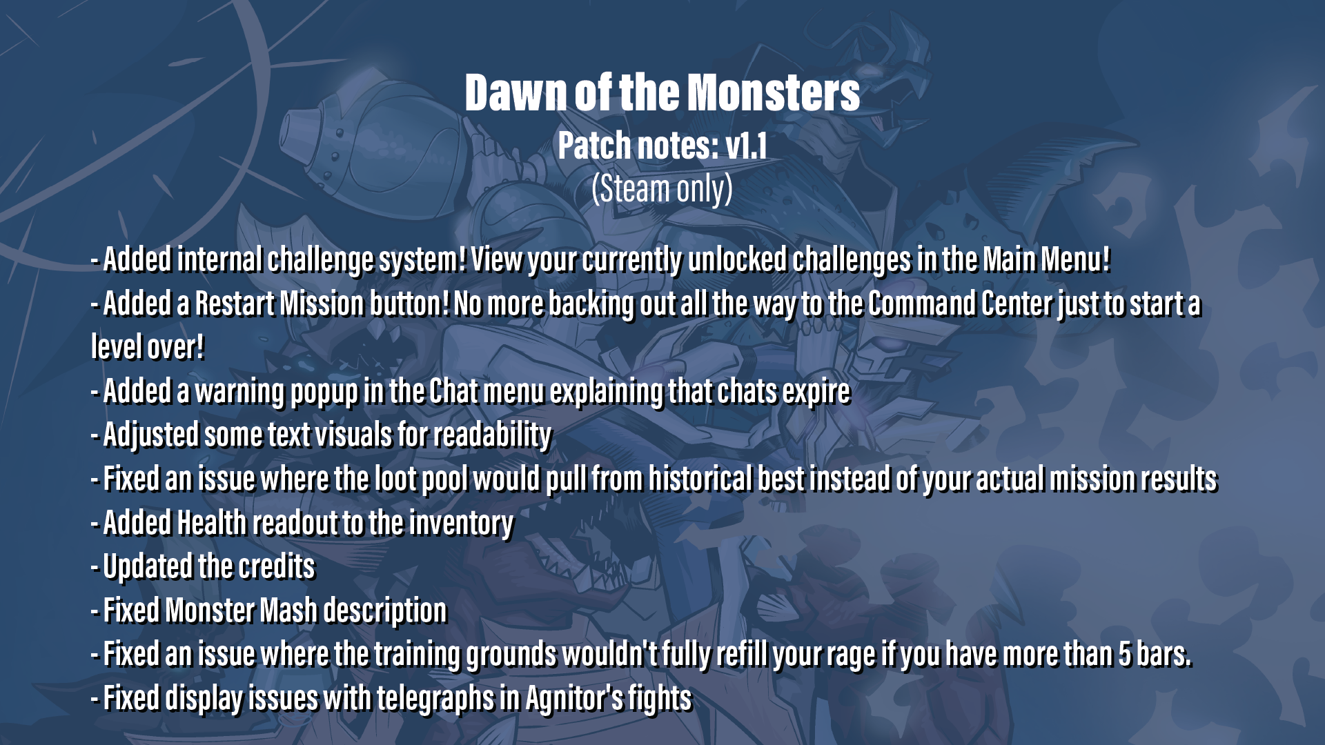 Dawn of the Monsters Patch notes: v1.0.1 (Steam only)