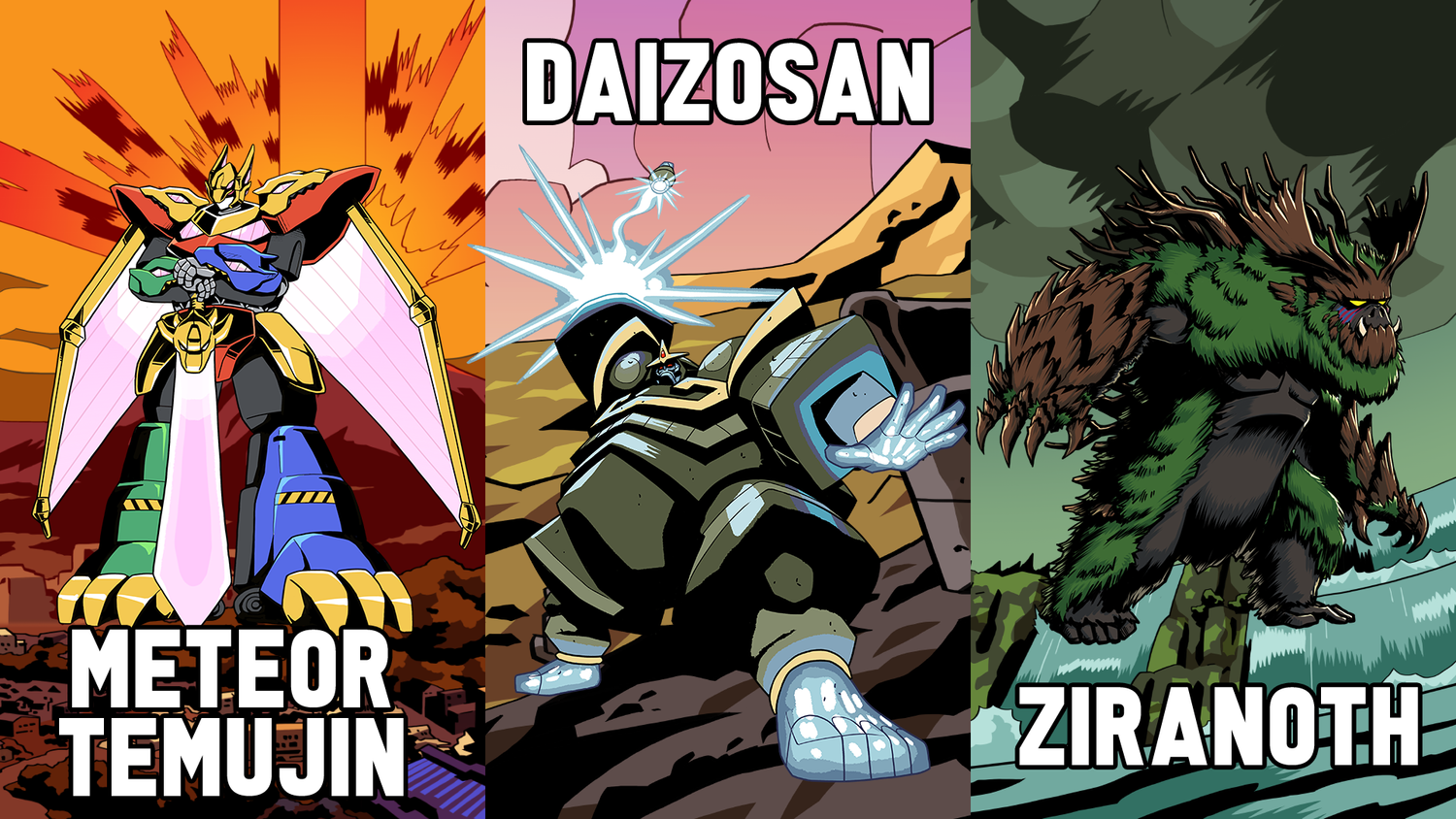 The coolest part? The community gets to help decide which character will be added! We’ve got three choices: The combining ATOM METEOR TEMUJIN, the living statue DAIZOSAN, and the mighty forest ape ZIRANOTH.