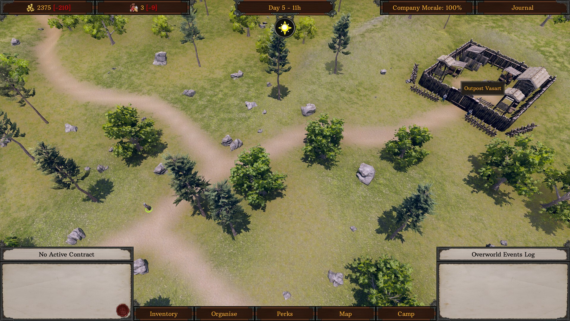 - General lore about the land. - Gain or lose company morale. - Find herbs, tools, provisions, crowns and items. - Someone asks to join the company. - Company member gains a stat boost. - Forcibly acquire an item but lose Affinity (relations). - Outlaw/bandit/raider encounter. - Outlaw/bandit/raider ambush. - Ambush a small group of outlaws/bandit/raiders at their camp. - Noble retaliation if your Affinity (relations) drops to 0. - Assist in a merchant that is getting raided. - Assist a noble army camp that is getting attacked. - Attack a small militia patrol.