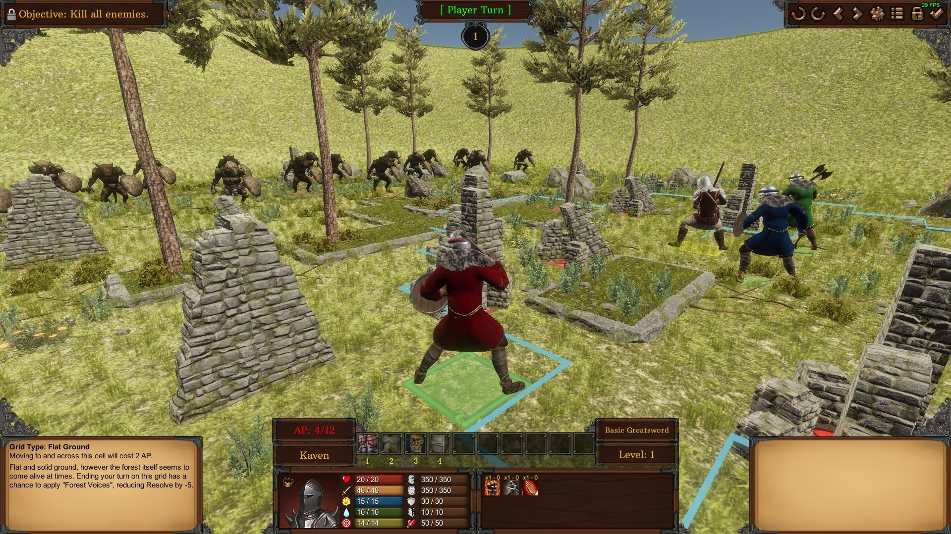 1. Cinematic camera angles, which can be toggled on/off. 2. Damaged and bloody armor, the armors will get damaged and eventually get bloody once the character starts taking direct damage. 3. Blood on weapons. 4. Blood splatter which stays on the ground for a time. 5. Blood pools that form on the ground from the slain. 6. Weapon trails, while it may be slightly unrealistic, I feel it really adds to the impact of the attacks and allows the animations to be more easily distinguished/conveyed. 7. Decapitations, although it is really exaggerated in the video, I have not yet implemented checks for it, IE when to trigger a decapitation and when not too, or to explode the head on blunt impact. 8. Updated grid highlights, the move range (blue lines) used to have issues with the lighting making them appear darker on certain angles, that issue is now fixed and I've added animation to the grid cell highlights to further distinguish them and removed the "cartoony" icons that I used to use.