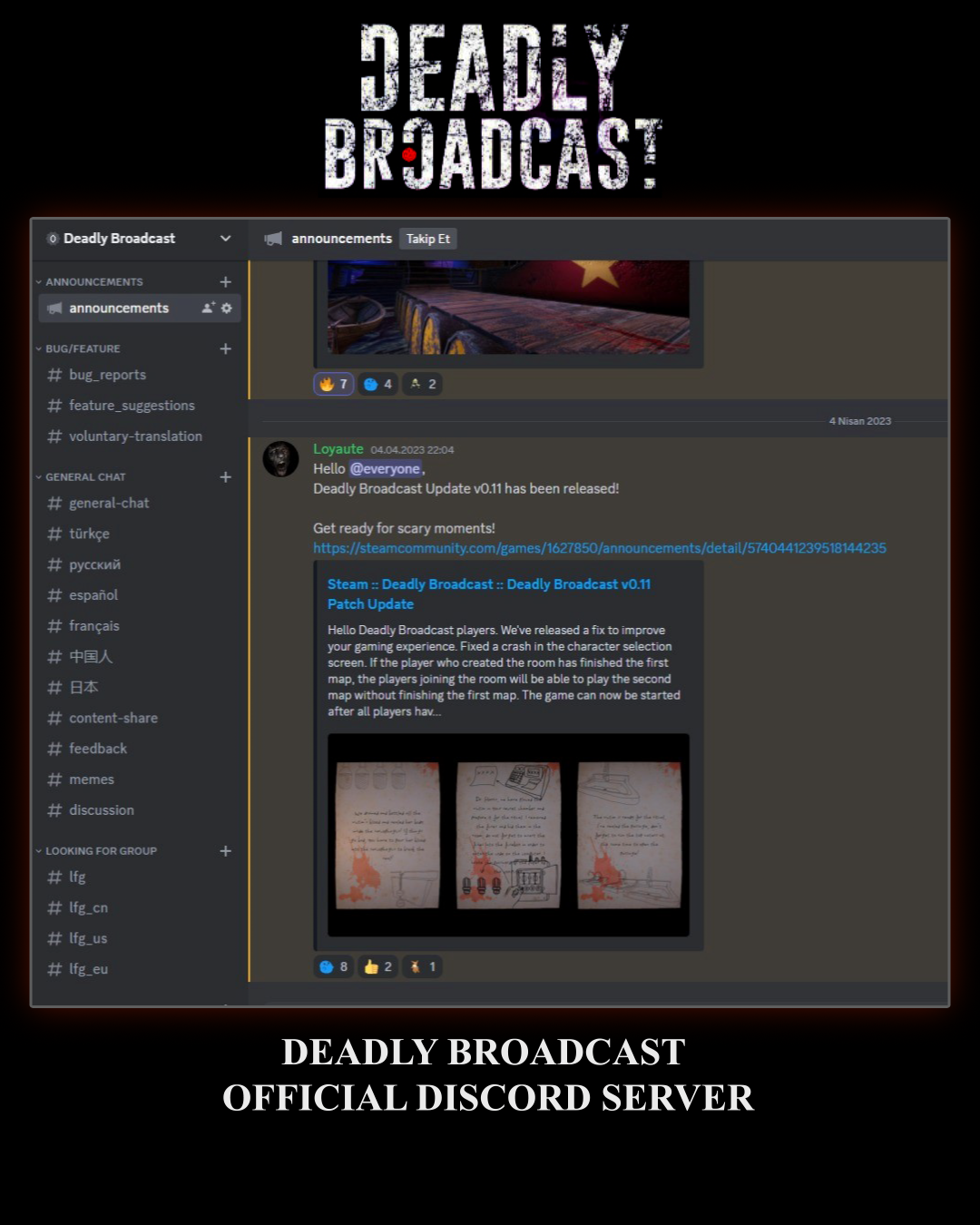 Don't forget to visit our Deadly Broadcast Official Discord Server!