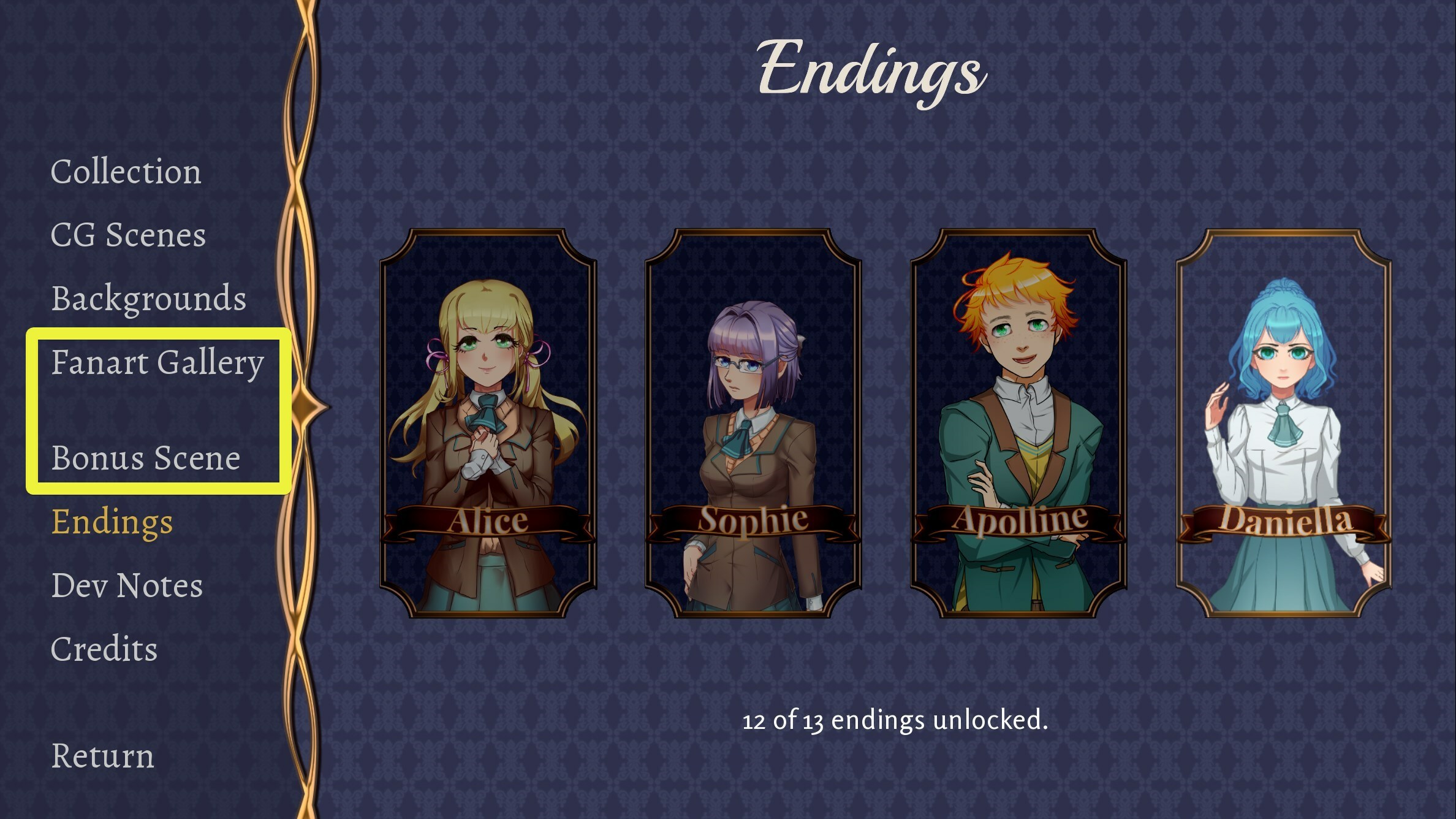 We're excited to update the game today with a bonus epilogue! If you wanted to see more of Daniella, Apolline, Sophie, Alice, and the main character, this scene shows more of what happened after the ending.
