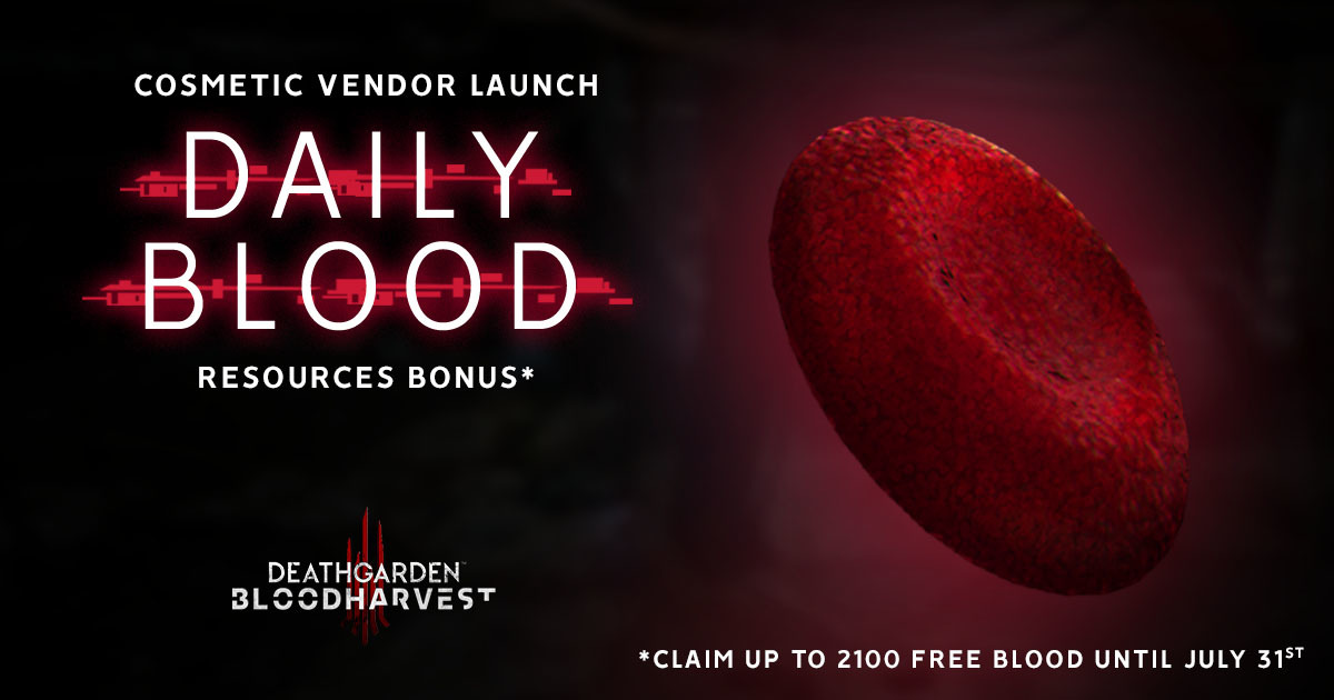 The Cosmetic Vendor just settled in. To celebrate its arrival, you will be able to claim blood each day in your in-game mailbox.