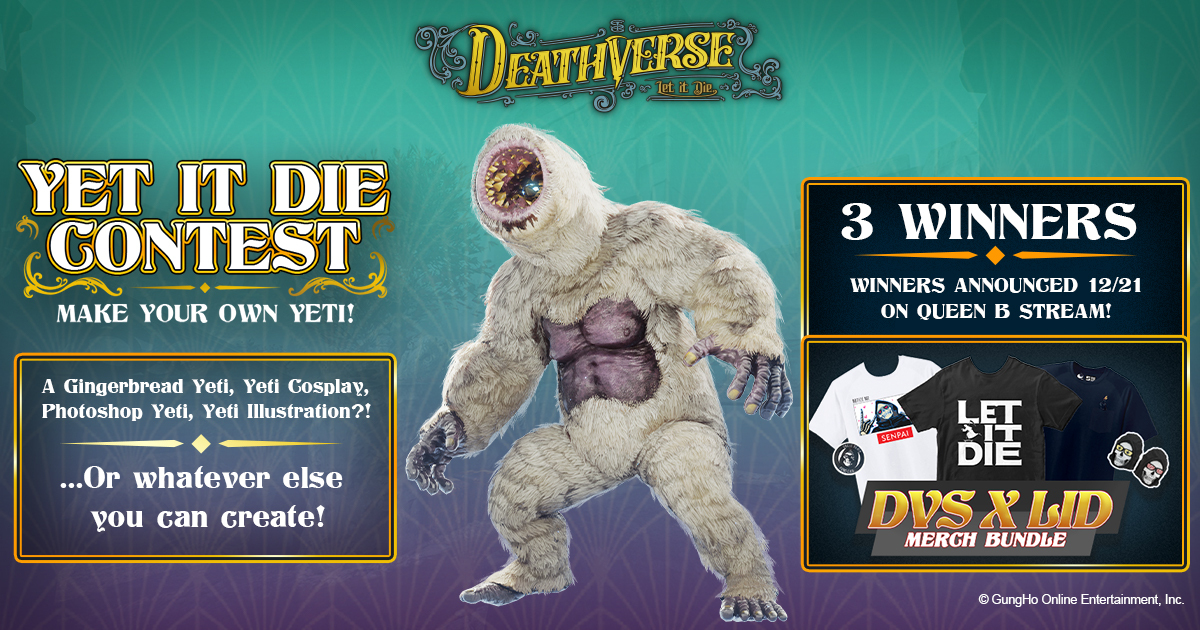 And, in the spirit of the season, we'll be giving out PRIZES to the creators of our 3 favorite entries. Our winners will each receive a LET IT DIE x DEATHVERSE merch bundle, so don't wait to join the party by sharing your submission!