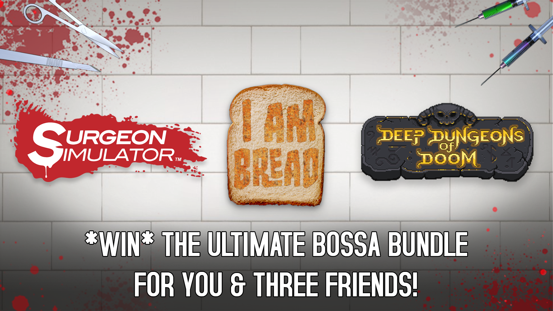 In the meantime, get on over to our Twitter page for a chance to bag yo'self the ultimate Bossa bundle, including a copy of Surgeon Simulator, I am Bread & Deep Dungeons of Doom, for YOU & THREE mates! 💉🍞⚔️