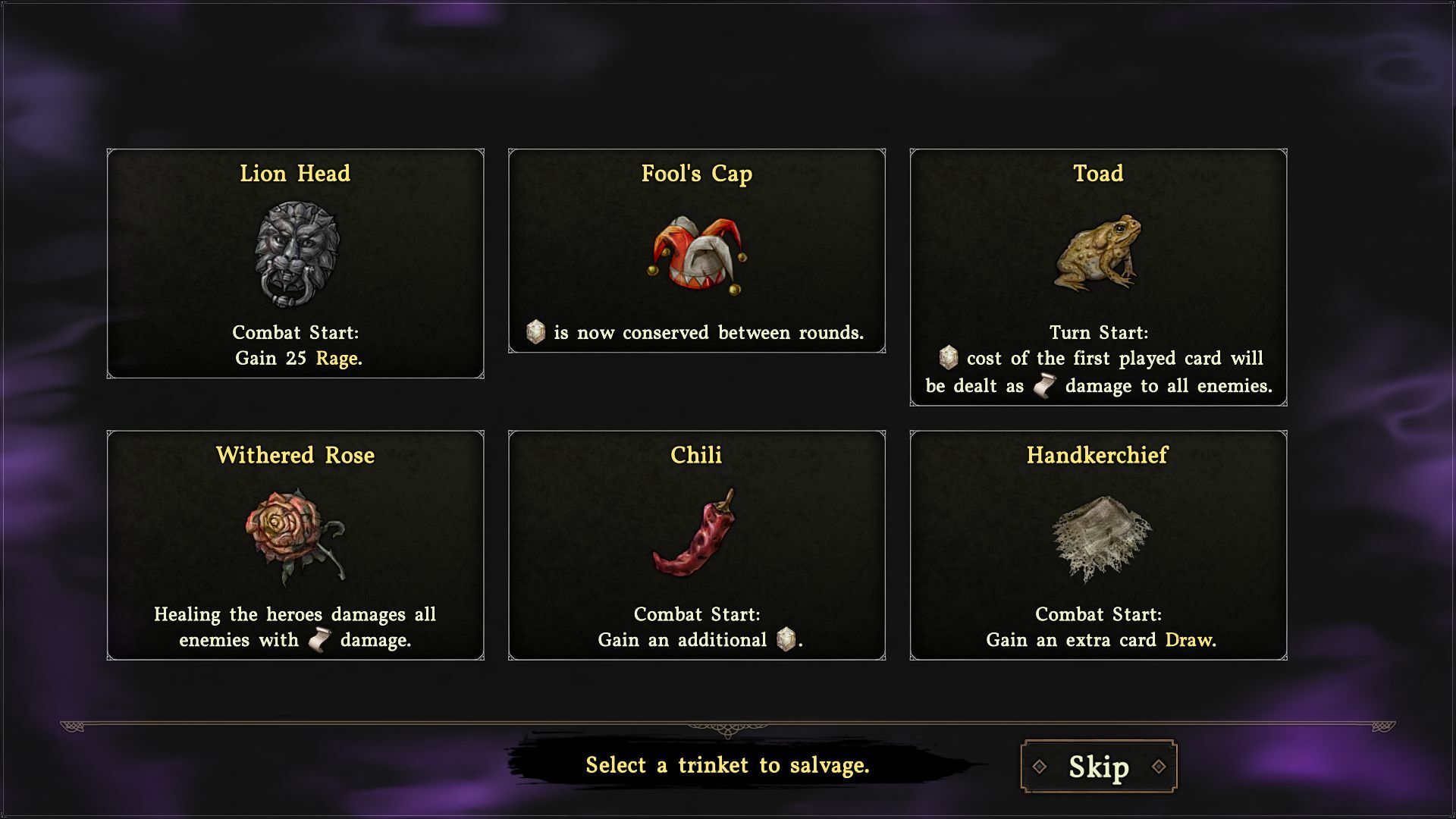 Fixed a rare case when a salvaged trinket could appear during a run.