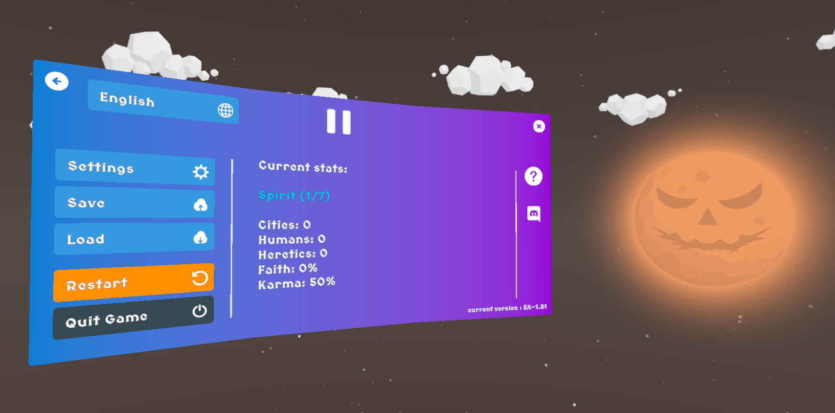 - Added a temporary halloween skybox - Some towns are now decorated with pumpkins - Swamps are now decorated with pumpkins and dead trees - New temporary miracle "Fear" - New halloween themed music