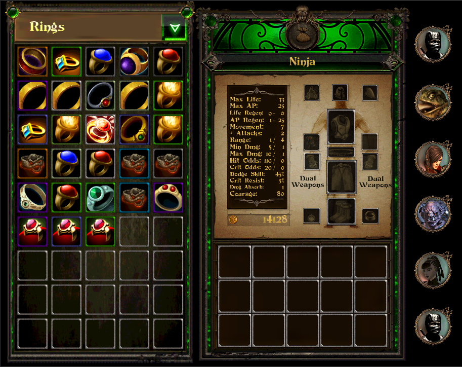 - Fixed a bug where pressing the End Turn button while a unit was performing a move or attack would cause the end turn button to disappear. - Shop keeper now sorts items in categories by item type. Amulets, rings, weapons, etc. are now in separate categories. - Removed the old "cheap, normal, premium" item categories. - Items are now sorted in ascending order of price. - Fixed a bug where characters with no missile attacks were showing missile attack stats in the shop keeper character stat screen. - Several minor bug fixes. - Fixed a bug where characters would sometimes walk off the board. Please note that when this occurs, the character instead instantly teleports to the target tile. This is not ideal visually but does prevent an otherwise game-breaking event. Hopefully, this can be further improved in future updates.