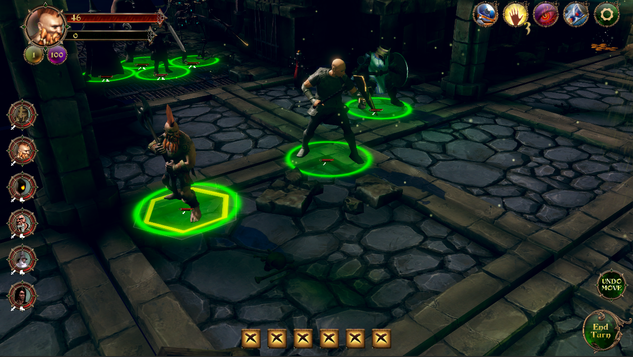 Also, on the left of the screen is a WIP of the new party summary UI that will show all 6 party members, their current hit points and an indicator as to whether they have any movement, attacks or abilities available to them.
