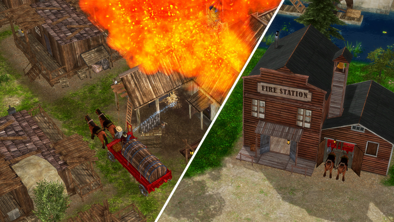 With the new fire station your city is prepared for fires. We removed the old "water bucket" system so your residents can focus on their things and let the fire wagon do the work.