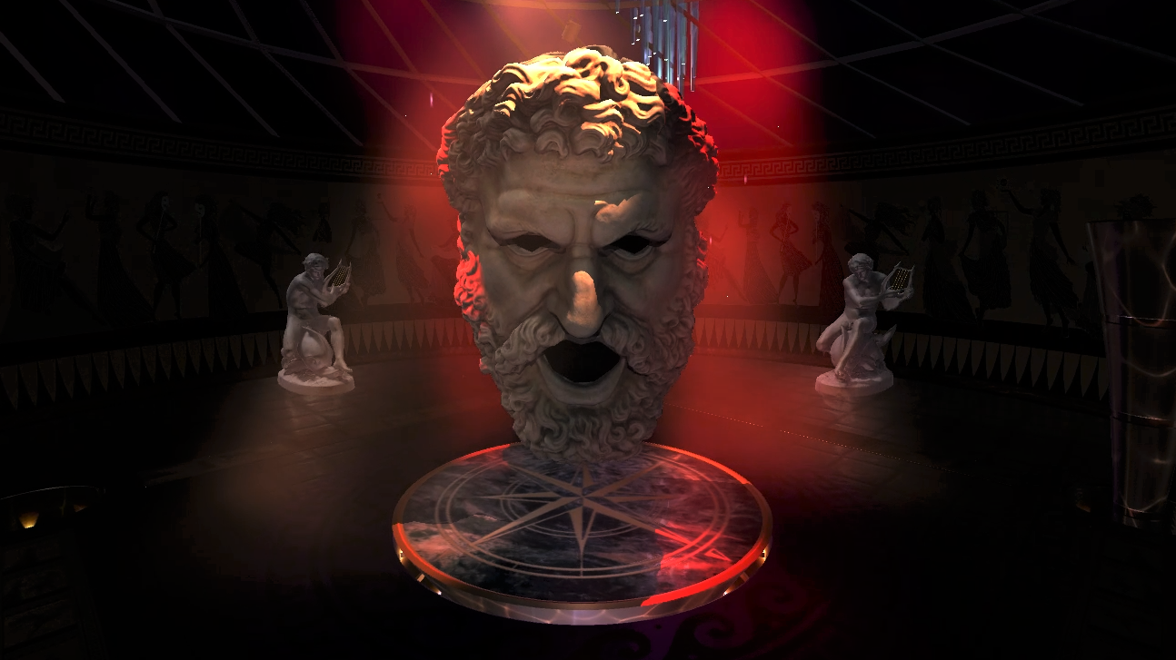 For AQUA, this featured character is an imposing, towering digital recreation of the Mask of Melpomene the Muse of Tragedy, courtesy of the 'Muzeul Școlii de Arhitectură' in Bucharest (Centrul Expoziţional Documentar UAUIM). See the real marble sculpture at the Musée du Louvre being held in the right hand of an anonymously-carved statue from ca. 50 BC.