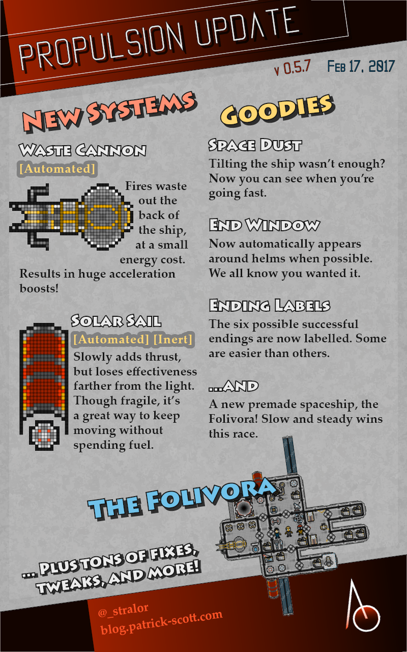 Added Solar Sails. Harness the power of sunlight to (slowly, ever so slowly) propel yourself forward