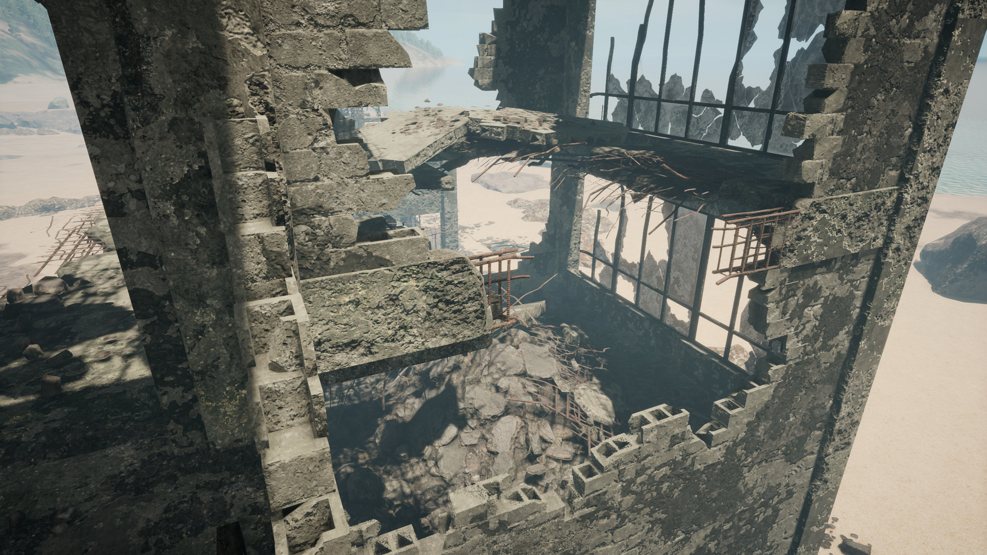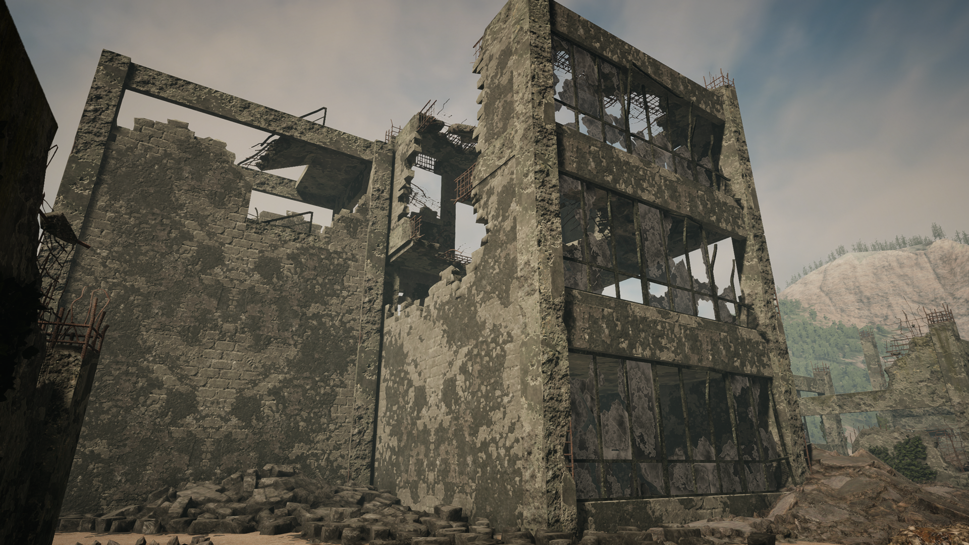 Destroyed buildings that you can explore. These are the last remnants of human civilization when it was destroyed 1000 years ago. Scavenge for resources like metals, plastics, oil, tools and weapons. To ensure humanity's survival, YOU need to survive!