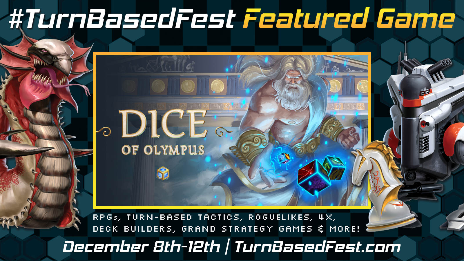 From December 8th to December 12th during the "Turn Based Festival" come and play Dice Of Olympus for free!