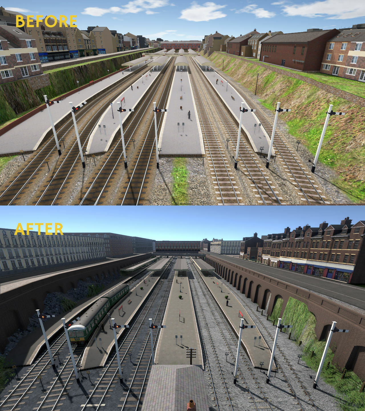 The alpha version is still largely unoptimised, leading to low and fluctuating frame rates in the driving sim. Also the three core routes (Mountain Pass, North Landen and Westfords) have not yet been properly updated to make use of the new scenery features. Neither of these are a problem for route developers, so this is a good time to start collecting feedback on the new route editor features.