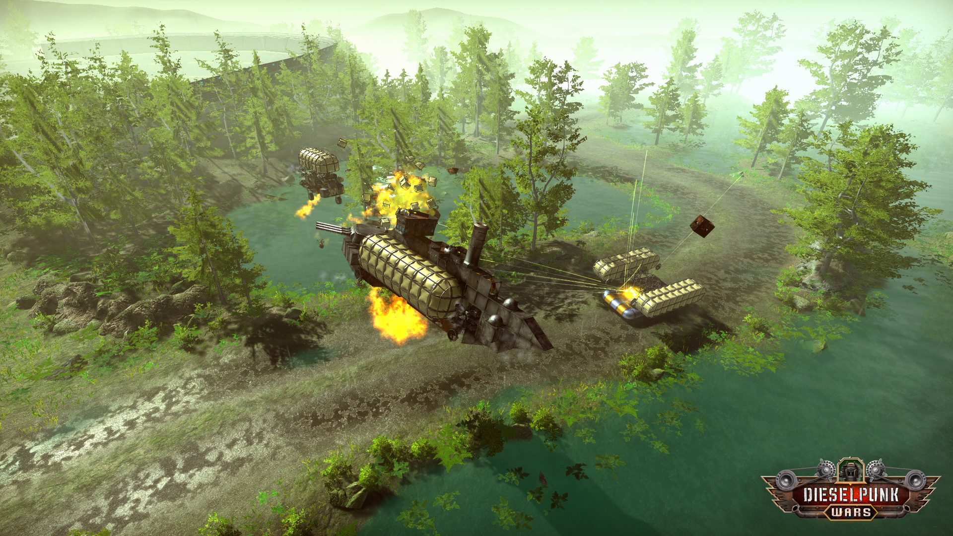 Construct vehicles that ride on the ground, soar through the skies, or dive underwater - this is Dieselpunk Wars.