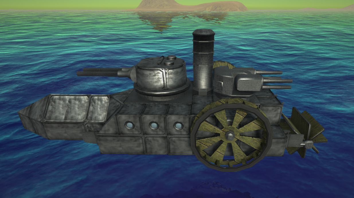 Includes rocket launchers, mines thrower, two types of torpedo launchers, in form of a turret and built into hull. For close combat, weapons like saw, drill and flamethrower can be useful. There are 2 types of bombs and equipment for manipulating surroundings and for many interesting things - harpoon and steam pusher