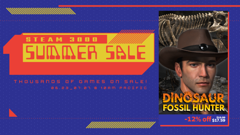 It's time for another Steam Summer Sale! This year Dinosaur Fossil Hunter is participating in it for the first time. That's why we've set up a -12% discount on our recently released game!