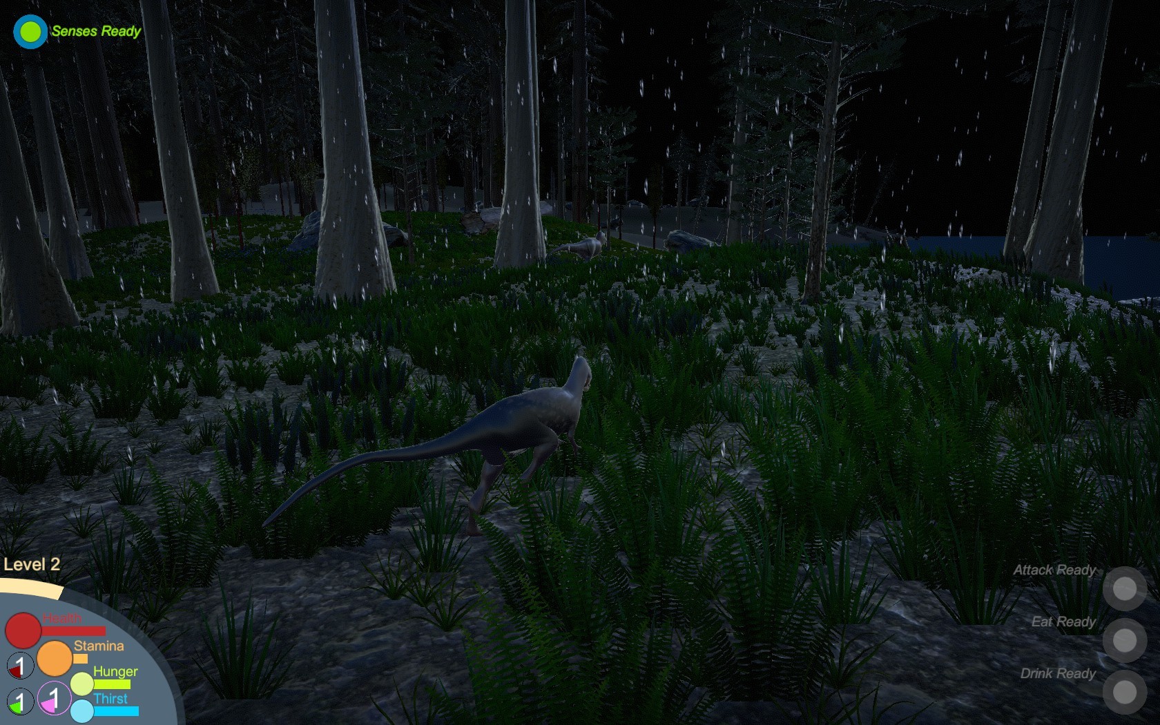 These will have an impact during gameplay, if we were to look at a much milder example, choosing heavy rain or light rain will resulted in edible plants to regrow much faster but carcasses to decay quicker, or if we were to look at a much more extreme example, choosing storm will resulted in higher water levels that causes flooding, which then resulted in several edible resources to not be accessible.