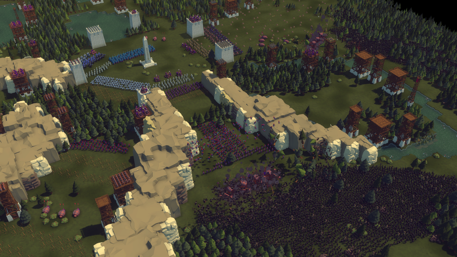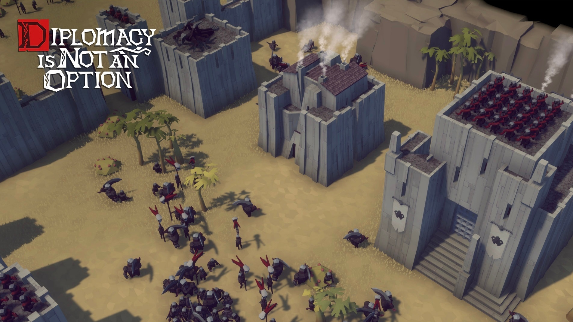 In particular, each warrior in the game is a full-fledged, independent entity. Thanks to this, the player can control his behavior at any time, just like in old-school strategy games! (And even civilians that players don't control are also separately calculated by the game). We wanted the battles between tens of thousands of people in Diplomacy is Not an Option to not be a trick that strategy game creators sometimes use. The essence of the trick is that it is actually squads that fight, and it is the squad, not the individual warrior, that is the minimal unit in the game. To make our design work, and work convincingly, we wrote many of our own software solutions based on the basic tools that Unity provides. For example, our navigation system combines many approaches such as A* and Flow Field. We made navigation layered and as cacheable as possible so that all the many in-game entities can "travel" across the map. (At the same time, the processing of their movement must still not burn players' computers). Combining these approaches allowed us to have those very crowds of enemies moving autonomously on the map, maximizing the re-use of "paths" already traveled by other entities. For example, if one enemy from an attacking wave has already traveled a route from a certain area A to area B, rest assured that the other warriors (including those from subsequent attacking waves) won't try to re-find the path. They will reuse the one they already had unless the state of the map changes. (A new obstacle appears or what was an obstacle is destroyed). But even if the route is changed, only a small part of the way is "discarded", which again allows us to save precious hardware resources. We've written our own physics in the game, maximally optimized for strategy, with the main simulation in 2D space (XZ plane of the ground) with the "connection" of the third dimension if necessary ( projectiles, explosions, thrown enemies). And we have listed only the most significant of the solutions applied. In fact, there are many more.
