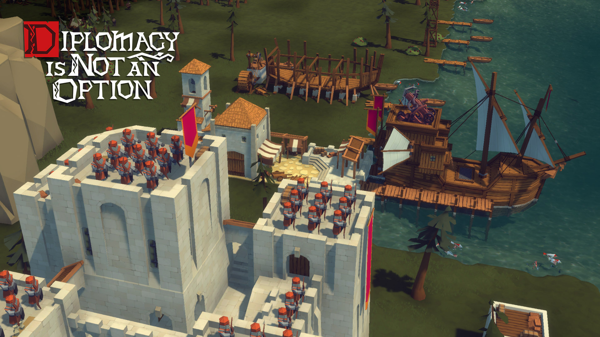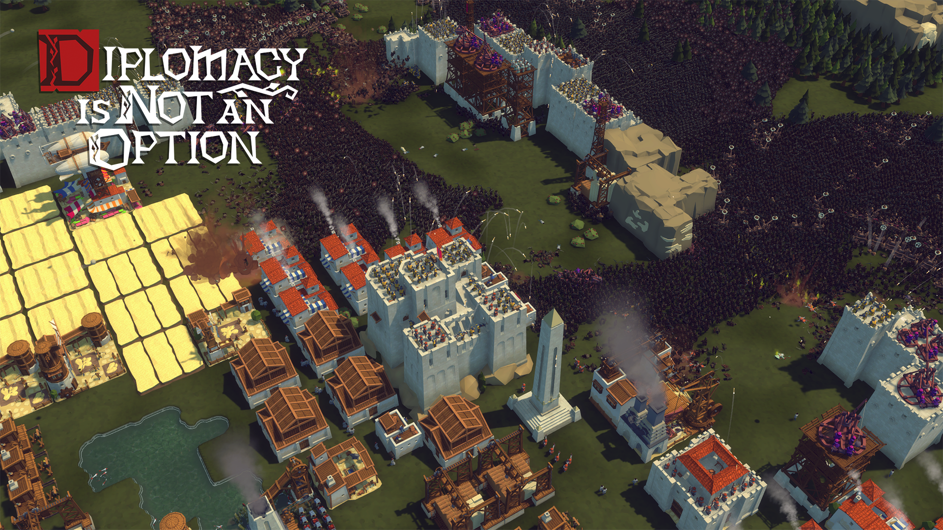Also, when someone wants to besiege someone else's castle, the first someone may suddenly find out that a third force has come from the rear, in an attempt to help the city under siege. In our game, such a situation also happens. And of course, you should never forget about the defense of your own borders. After all, as in the typical Diplomacy is Not an Option's missions, losing the Townhall will result in an instant defeat.