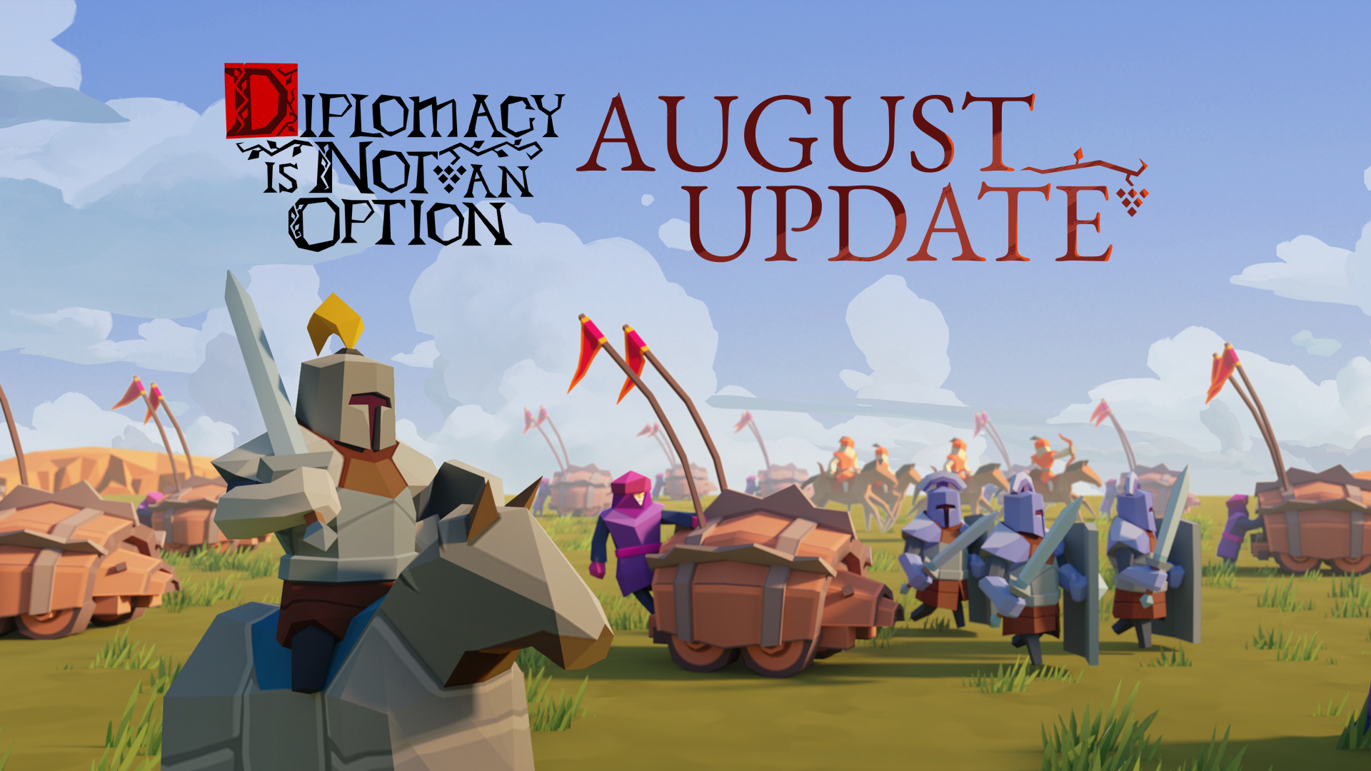 Greetings, friends. Today we continue the announcement of new units under Player's control. Previously we've already shared ideas about additional mounted troops. Today we're going to confirm that Diplomacy is Not an Option is going to have "fire ship" except for the 'ship' part. We don't have naval battles in our game, though the concept of a unit that blows up and makes significant damage is very tempting. So our game designers came up with a brilliant idea of creating the 'cart with surprise' unit. It's gonna be... a cart; but when it faces the enemy it explodes in a ludicrous way. Perhaps, sometime later we'll even share some concept art. But for now, that's all we wanted to tell you. Stay tuned!