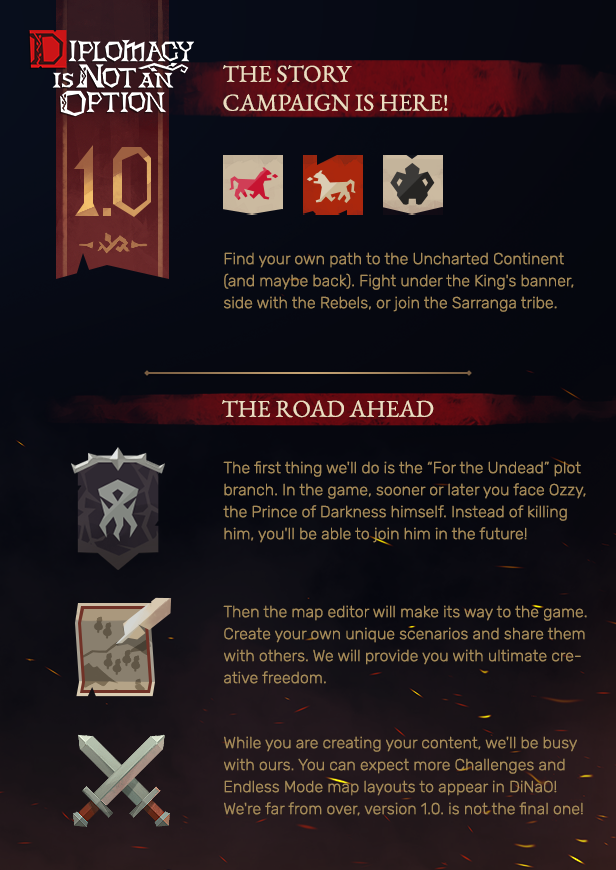 Apart from that, we added Steam achievements and Twitch integration. Yet it's far from over. Not even close, as we do continue to develop and support the game. And we'll be back with more announcements and updates in the future. In the meantime, would you please welcome Diplomacy is Not an Option 1.0.!