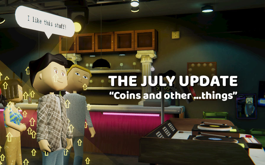 A real world, besides the disco’s dancefloor: You’ll have your own room, there’s a back alley with a shop (and an interesting character), some empty lots to explore (in coming updates), the front street to watch your customers come and go. Everything now feels more like a complete world, rather than a restricted room - and we hope you’ll get the same feeling.