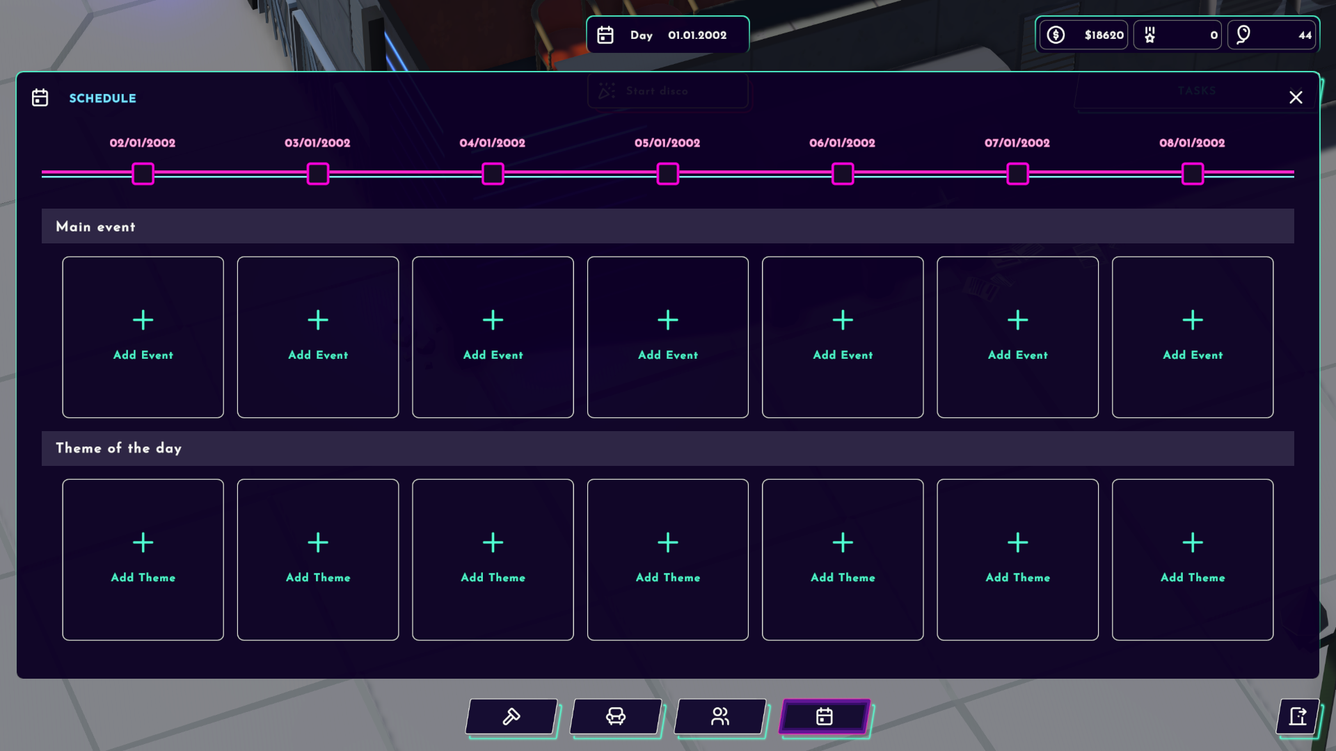 The schedule has another function and that is to add the thematic days! 🕺 Be it a New Year’s Eve party which is given to you by the system or something like the beer day which you could set up yourself, use them wisely to ramp up your club’s earnings! 💰