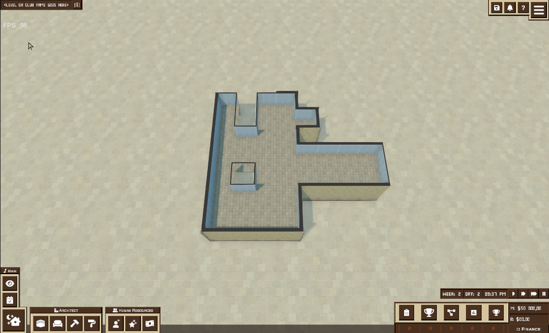 Also, we've introduced more freedom in the creation of your dream club. The last building system allowed the player to create rooms by dragging his mouse over a certain area, which was then automatically converted into rooms with pre-designed walls and floors. The player was able to modify said room either by painting or removing walls, changing the floor, or manually placing other walls within the room. This made the whole system confusing to use, and it often lagged the game due to the number of calculations required to process the recalculation of the club (sounds complicated? Yeah, it was).