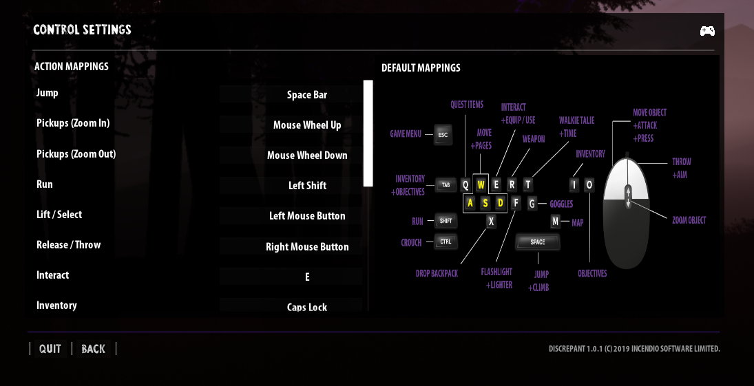 Includes all key actions, but not WASD and Mouse - presume those are not needed?