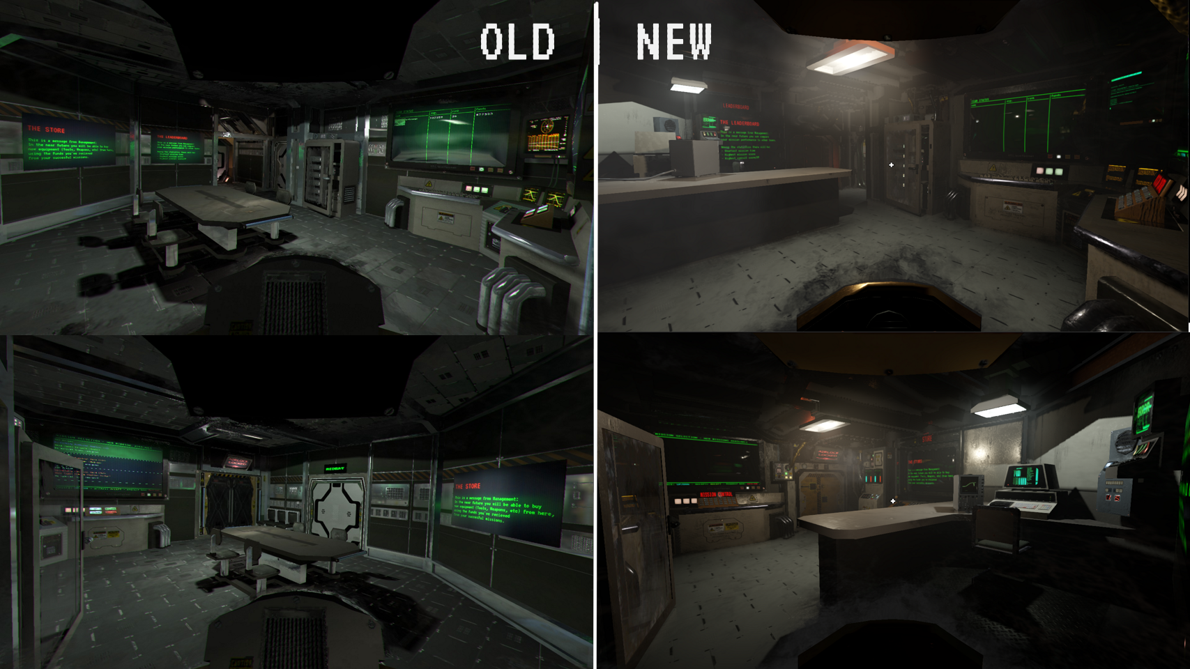 The Lobby has been given an overhaul, making it slightly smaller but more detailed and immersive. A lot of detail models have been added and the existing models have been given an upgrade. The textures have all been given a grime pass, making things look more worn and well-used to increase immersion.