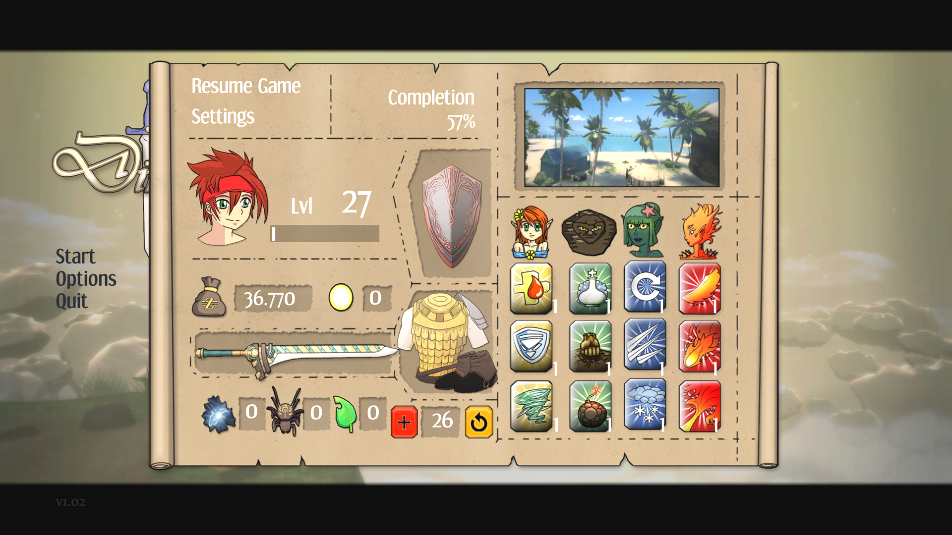 Spoiler alert!The world has been saved but the Great Tree has perished. After the great battle, Cyrus and his party wake up and are greeted by the Sprout of the Great Tree, who will one day eventually grow back into his former glory. To celebrate this great victory, the party decides to travel to Orio Beach, which has finally been opened to the public again. Help Tayeb to set-up his newest artefact shop at the beach and rescue a cute new friend. Enjoy your brief ocean getaway young hero, you have earned it!. Added new region “Orio Beach” including 2 new monsters as the late-game hub. Added “Orio Beach” to the 2D/3D world map. -- --