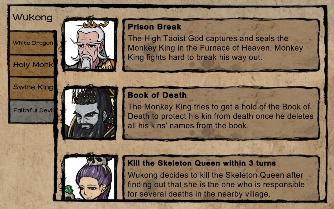 Prison Break - this was when the Monkey King was captured and sealed in the Furnace of Heaven. The Monkey King must defeat the High Taoist God and beak the Furnace within seven turns to survive.