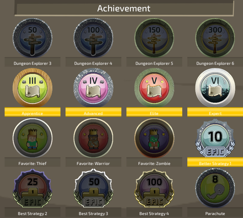 6. Adjustment for achievement since game elements changed. The adjustment system works fine, just no pictures yet.