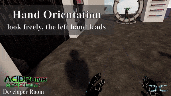 For the next update before the final release scheduled for this year (finally), we have integrated orientation via head movement or left-hand orientation to be selected in the in-game menu.