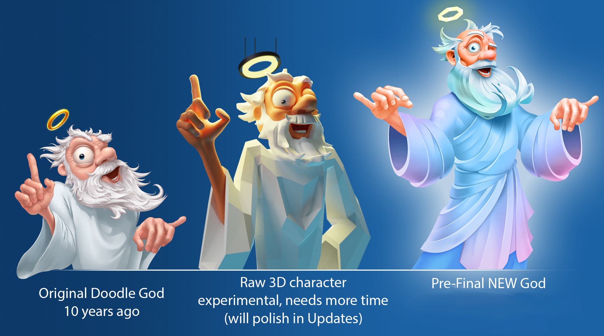 π₯ Look at how King developed over the time in our Doodle God Universe creating process! The King now looks courageous, and at the same time so handsome in our new upcoming game!