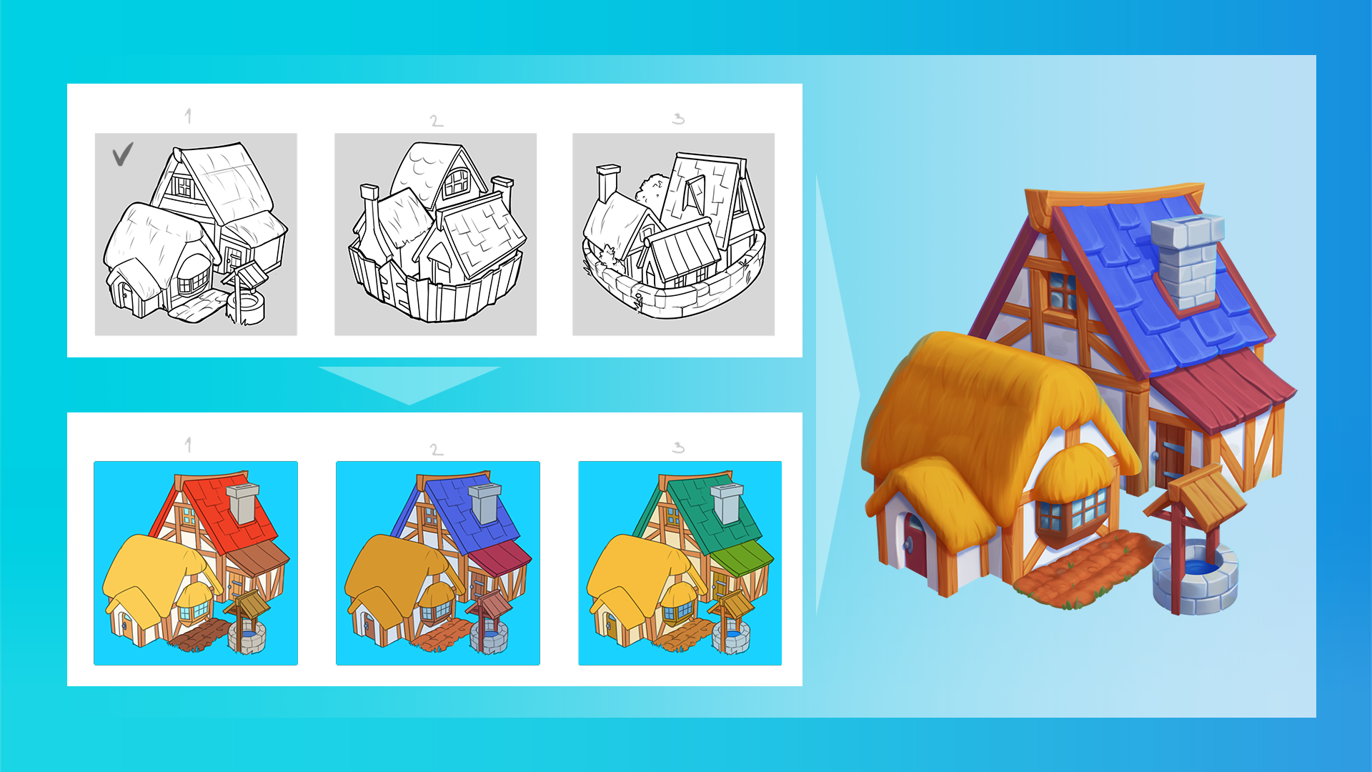 π₯ Another small post about Doodle God Universe arts creating process! Today you can take a look at our village progress over time.