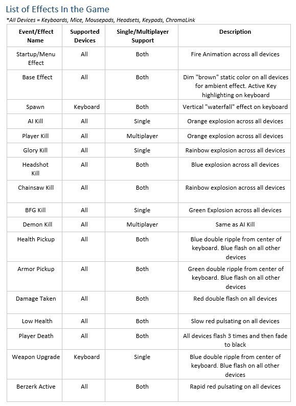 Today we've released an update for DOOM that enables Razer Chroma device support. Here are the effects and events: