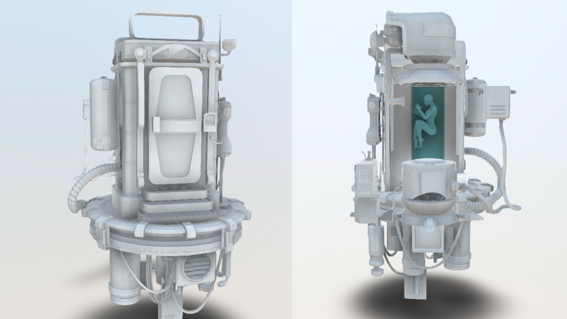 Concept №1 The first concept was the most far off from the final design. And it only makes sense to have a very sketchy draft at first, we weren’t the first to work on a single instance for weeks without reaching a desirable outcome. Without beating around the bush too much, the first concept involved a woman in a cryopod. By all accounts, this idea sounds both intriguing and like it could have decent gameplay. Was she a criminal or maybe some cyberpunk superhero?