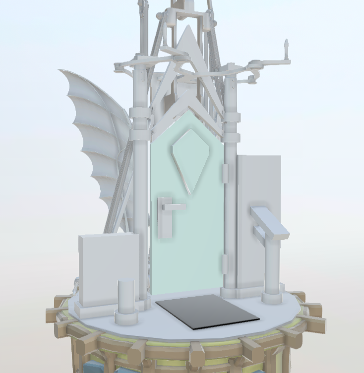 Prototype number three (right) proved to be the winning design in the race. After the second iteration the team felt satisfied with the placement and overall silhouette of the door. At that point, the details started going into their respective places - where to put the puzzles we chose and which mechanics fit into the general aesthetic of the level and category.
